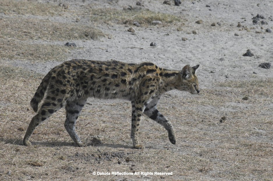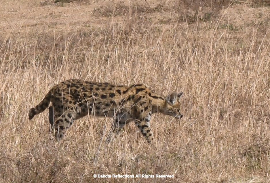 Other mammal carnivores include the Cheetah, about 3,500 spotted hyena, Black-backed jackal, African golden wolf, honey badger, striped hyena, caracal, serval, banded mongoose, and two species of otters. The African wild dog was reintroduced to the area in 2012 after disappearing in 1991. Other mammals include hippopotamus, common warthog, aardvark, aardwolf, African wildcat, African civet, common genet, zorilla, african striped weasel, bat-eared fox, ground pangolin, crested porcupine, three species of hyraxes and cape hare. Primates such as yellow and olive baboons, patas monkeys, and vervet monkey, mantled guereza are also seen in the gallery forests of the Grumeti River.