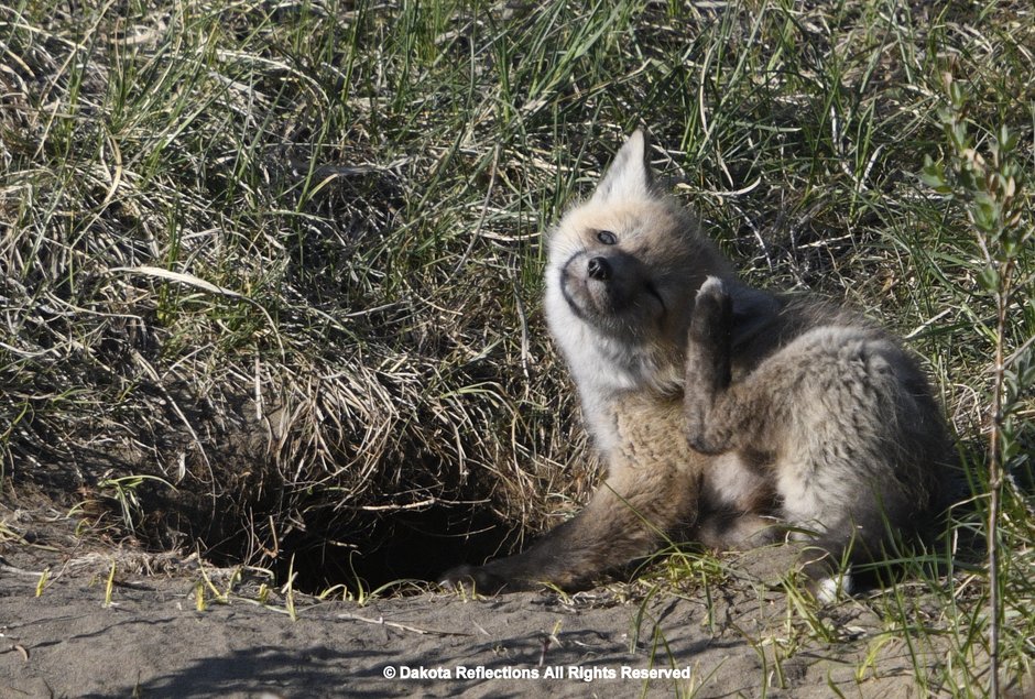 It is good to have friends who are willing to share information. I was tipped off by a fellow photographer on the location of two fox dens near Bismarck and another by a social media friend. I reciprocated later in the year by leading my photographer friend to a badger burrow with an active badger. A car or portable blind was used to photograph kits near the den. The location of the dens is a well-kept secret due to the desire to minimize visitations and disruptions to the fox families.